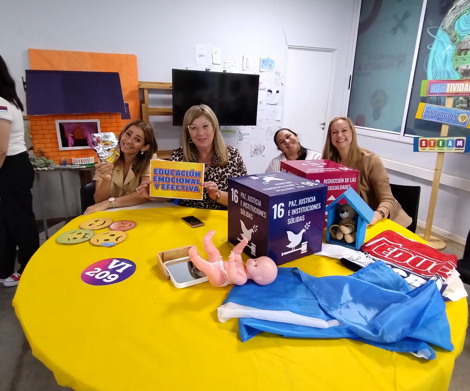 El equipo pedagógico de la SEDII brindó dinámica denominada: “En busca del modelo escondido”, donde se dispuso por toda la sala, de recursos escondidos los cuales deben ser encontrados por las docentes, deberán clasificarlos e identificar a que enfoque pertenecen (Ed. Ambiental, STEAM, Ed. Efectiva y emocional).